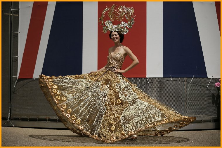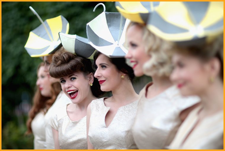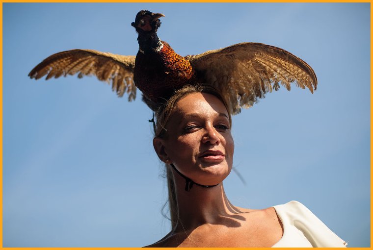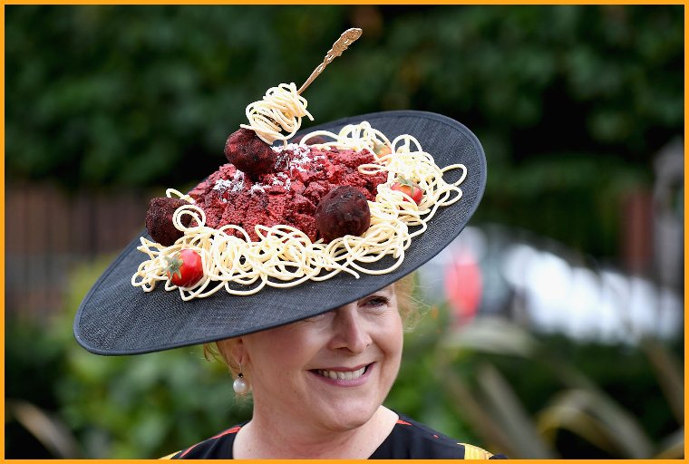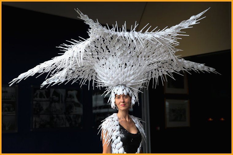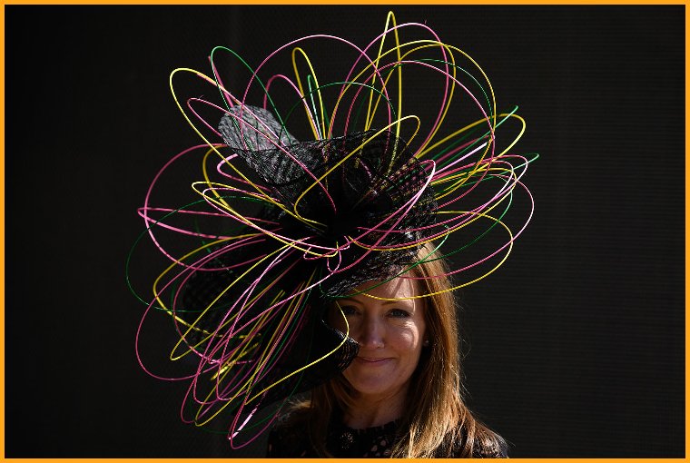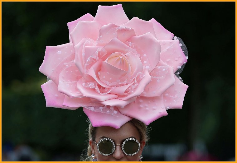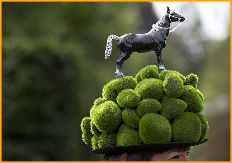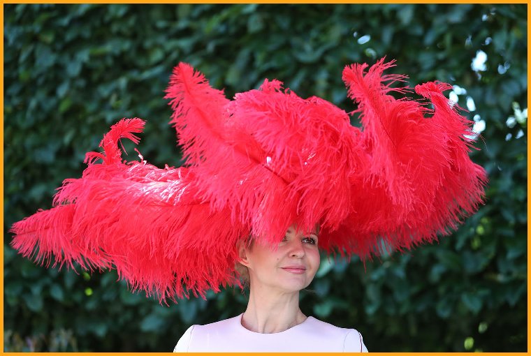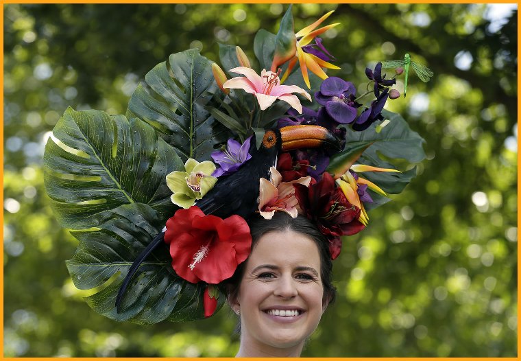 Hats of the Royal Ascot The Royal Ascot is an annual five-day horse-race meeting held on a course outside of London, England, with racehorses competing for nearly $18 million in prizes. It is a major event for both racing and fashion fans, and is regularly attended by Queen Elizabeth II and other royalty. Parts of the racecourse maintain a “top hats and tails” rule for men, while many women dress in eye-catching outfits, often topped by hats that can be described as architectural, whimsical, grandiose, sculptural, or just over-the-top. Here's a collection of photos of some of these millinery miracles, worn by Royal Ascot racegoers over the past few years. 1. ![]() A racegoer poses for a photograph on the first day of the Royal Ascot horse racing meet in Ascot, west of London, England, on June 19, 2018. 2. ![]() A woman wears a large hat made of recycled plastic spoons on the second day of Royal Ascot on June 17, 2015. 3. ![]() Queen Elizabeth II on the third day of Royal Ascot, June 21, 2018, in Ascot, England. 4. ![]() Royal Ascot fashion on display on June 19, 2018. 5. ![]() A racegoer, photographed before the start of the race on June 20, 2018. 6. ![]() Jacqueline Appel poses on Ladies' Day at the Royal Ascot on June 21, 2018. 7. ![]() Ladies' Day at the Royal Ascot on June 21, 2018 8. ![]() A racegoer wearing creative headgear poses on the second day of the Royal Ascot, June 20, 2018. 9. ![]() Racegoers wearing large hats jostle for space on a car on the London Underground as they travel to the Royal Ascot from Waterloo Station on June 21, 2018. 10. ![]() Sally Tringham, a racegoer, poses during the third day of Royal Ascot, June 21, 2018. 11. ![]() The Tootsie Rollers pose for a photograph on the second day of the Royal Ascot, June 17, 2015. 12. ![]() A racegoer attends Royal Ascot 2017 on June 24 13. ![]() Jackie St. Clair at Royal Ascot on June 16, 2015. 14. ![]() A racegoer attends Ladies' Day at the Royal Ascot horse-racing meet on June 22, 2017. 15. ![]() A man wears a fuzzy pink top hat at Ascot Racecourse on June 19, 2018. 16. ![]() Racegoers attend Royal Ascot on June 22, 2017, in Ascot, England. 17. ![]() A racegoer wearing a pheasant hat attends Royal Ascot 2017 on June 21 18. ![]() A racegoer attends Ladies' Day in Ascot on June 22, 2017. 19. ![]() Racegoers wear their elaborate hats for Ladies' Day on June 21, 2018. 20. ![]() Katrin Fahrenbruck attends the third day of Royal Ascot on June 21, 2018. 21. ![]() Tiffany Rowe models an ornate hat on the third day of the Royal Ascot, June, 19, 2014. 22. ![]() A racegoer attends Royal Ascot 2017 on June 24. 23. ![]() Treacy Pullen poses at the Royal Ascot horse-racing meet on June, 19, 2014. 24. ![]() A racegoer attends the third day of the Royal Ascot on June 21, 2018. 25. ![]() A racegoer's aviation-themed hat, photographed on June 23, 2017. 26. ![]() A racegoer poses at the Royal Ascot on June 20, 2018. 27. ![]() A racegoer blows kisses on Ladies' Day 2017 on June 22 in Ascot, England. 28. ![]() Apparently, horse races also took place in Ascot, England, on June 20, 2018. |