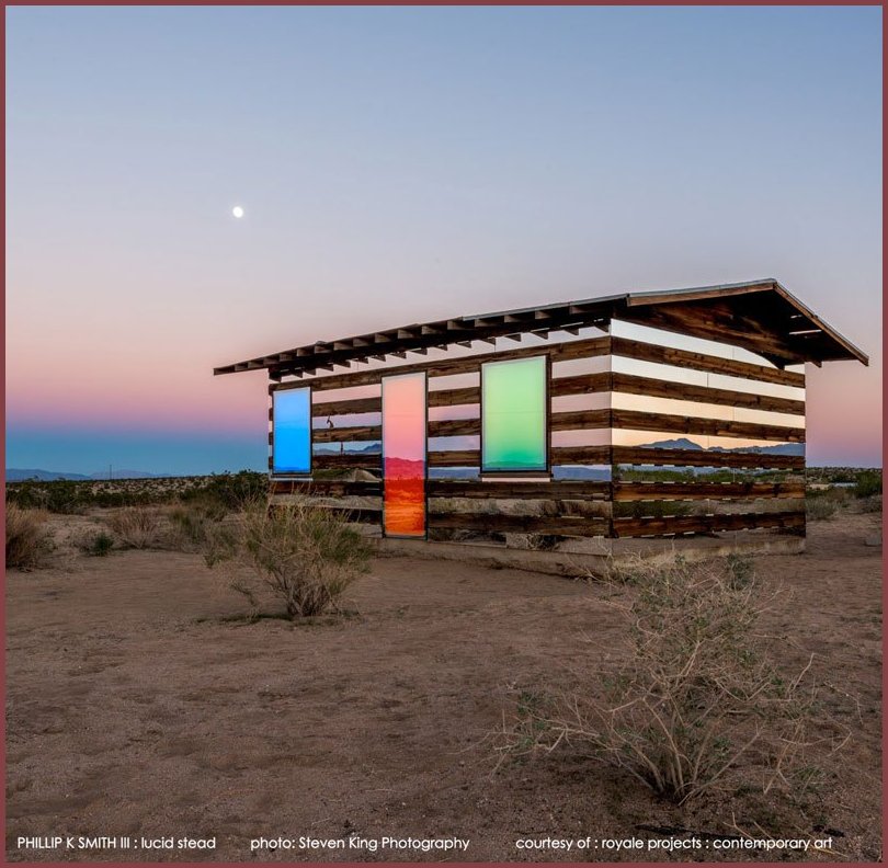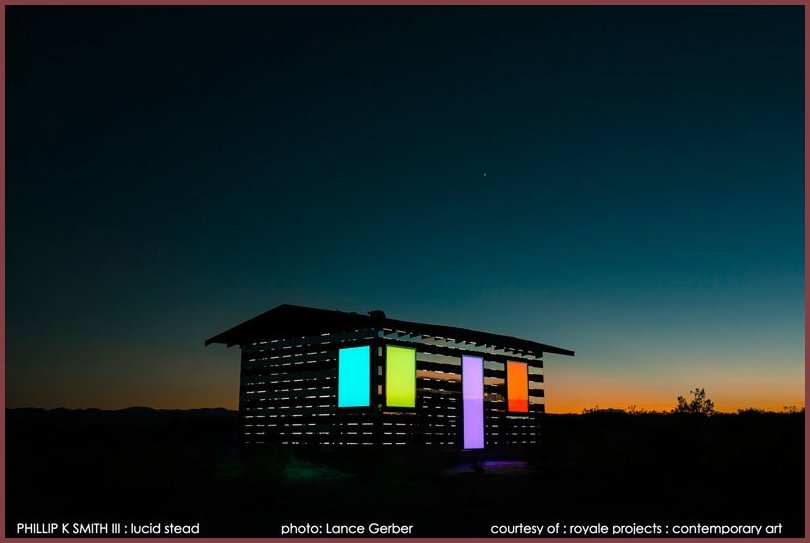 A Transparent Cabin of Wood and Mirrors on a Desert Landscape In Joshua Tree, California, artist Phillip K Smith III revealed his light based project, Lucid Stead. Composed of mirror, LED lighting, custom-built electronic equipment and Arduino programming amalgamated with a preexisting structure, this architectural intervention, at first, seems alien in context to the bleak landscape. Upon further viewing, Lucid Stead imposes a delirious, almost spiritual experience. Like the enveloping vista that changes hue as time passes, Lucid Stead transforms. In daylight the 70-year-old homesteader shack, that serves as the armature of the piece, reflects and refracts the surrounding terrain like a mirage or a hallucination. As the sun tucks behind the mountains, slowly shifting, geometric color fields emerge until they hover in the desolate darkness. This transformation also adapts personal perception, realigning one’s sensory priorities. A heightened awareness of solitude and the measured pace of the environment is realized. ![]() ![]() Q: How did you come up with this idea? I’ve owned this 5-acre property for about 9 years. I would come up several times a year to visit the shack and to spend time out in the raw of the desert. It was only about 8 months ago or so that I finally decided that it was time to do something on the property. And so, when I sat down to draw what I wanted to create, I drew what you see at Lucid Stead almost immediately. The idea had been slowly brewing for 9 years unconsciously. When it was time to conceptualize the project, I knew exactly what it wanted to be. ![]() ![]() Q: How is the project powered? Hot Purple Energy in Palm Springs donated a 6-panel solar array. This was a really important aspect of the overall project. I worked hard to ensure that there were no visible connections, no screws, nothing that explained clearly how the project actually existed. This allowed the experience to be very pure. The energy source of the lighting was part of this. I didn’t want the hum of a generator to pull you away from the purity of the experience. Solar not only ensured efficient, clean energy, but, most importantly for this project, quiet energy. ![]() ![]() Q: What is on the inside of the shack? Lucid Stead is an exterior experience. At the interior of the shack are the custom built electronic boards and Arduino with custom programming that sets the pace of the color change and the particular movement from specific color to specific color. ![]() ![]() Q: Was the shack existing? Yes. When I purchased the 5-acre property, it came with the existing shack. It is believed to have been built in the 1940’s as a homesteader shack. The project has really been a collaboration with the 70 year-old structure. The splitting wood, the bent nails, the dimensions of the openings are all untouched. ![]() ![]() Q: What do you intend to do with the shack? Building a project of this scale, as the artist, you have particular expectations. You hope this or that experience will happen as planned…or that a particular effect will be revealed as intended. With “Lucid Stead,” I can say that all of my expectations were met and they were also far surpassed. Entire projects and new concepts have been revealed to me. So, to answer the question…my intent is to study what I have made. It is my goal to spend time with the project and to document it fully through photography, drawing, writing, and other methods. This is much of the reason why I have decided to rent a property just a ˝ mile from Lucid Stead, which will be my Joshua Tree studio outpost for the next year. ![]() ![]() Q: Will there be more Lucid Steads? While inquiries from various institutions might warrant the purchase, moving or reconstruction of “Lucid Stead,” I am not interested in creating duplicates of this project due to its site specific nature in the desert of Joshua Tree. With this said, there are “Lucid Stead”-based concepts that could be carried to new sites that could inform new, site specific installations. Whether that next project is a 20’ high x 8’ wide mirrored surface that becomes a hovering plane of light or a converted shack on Martha’s Vineyard that employs corten and plate glass, that is yet to be defined. Ultimately, I am interested in furthering the concepts of “Lucid Stead” via the specifics of new locations across the globe. ![]() ![]() ![]() ![]() |