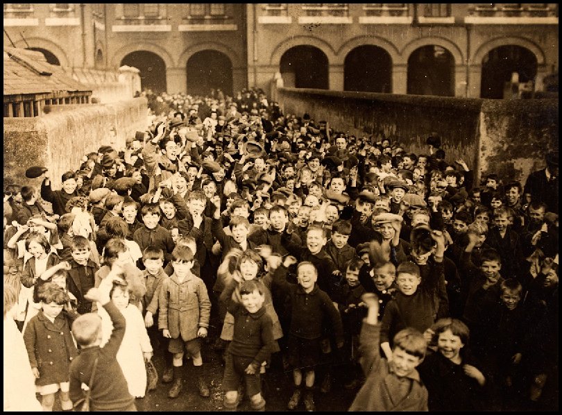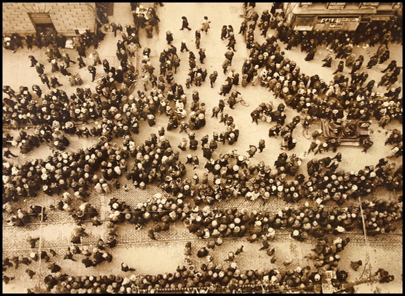 Crowds on Westland Row in Dublin waiting to meet prisoners released under general amnesty, taken from the railway bridge at Westland Row station. 20. Funeral of Michael Collins August 28, 1922.