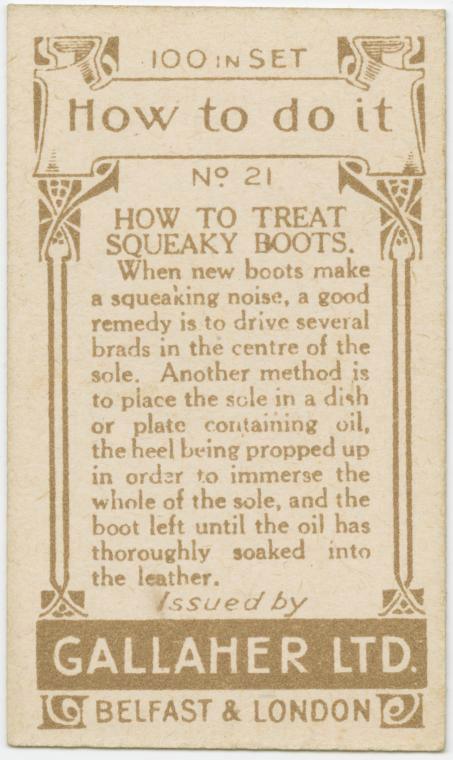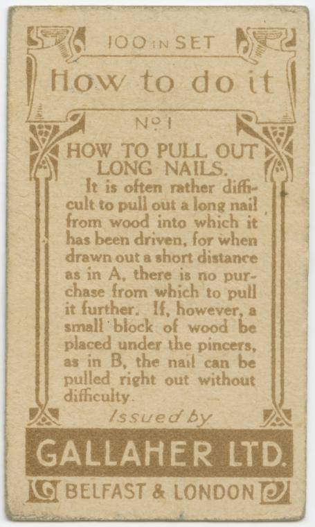 25 Vintage Life Hacks from 100 Years Ago (A Hack is also another term for a Tip.) In the early 20th Century, Gallaher’s Cigarettes printed a special series of 100 “How to do it” cards that included some truly useful and helpful tips for everyday situations and problems. I've selected the top 25 below. (Wonder how many would be effective today.) History - Back in the 1900s, cigarette manufactures used to insert stiffening cards into their paper cigarette packs to add strength and help them last longer. Along the way, someone had the bright idea of printing trivia, artwork and even famous people and athletes (Honus Wagner anyone?) onto the stiffening cards. 1. How to Extract a Splinter ![]()