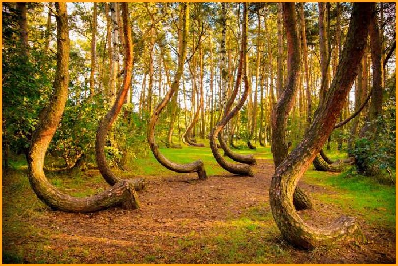 How is it that the coldest and driest place on the planet has a blood-red waterfall pouring down slowly in McMurdo Dry Valleys, some of the most extreme desert region on Earth? Scientists believed for many years the red algae gave the creepy color. Iron oxide is responsible for the hue, and research shows that the feature does contain strange bacterial life as the region may have a lot of salty and extremely cold groundwater. Crooked Forest, Poland